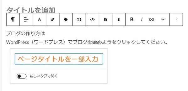 2. リンク先を入力する欄が表示されるのですが、ここにURLではなくページタイトルの一部分を入力します。