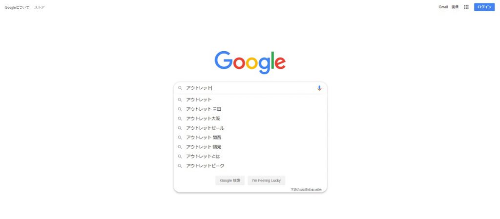 例えばGoogle検索窓で『アウトレット』と検索したとします。そうすると下の画像のような表示になりますよね。