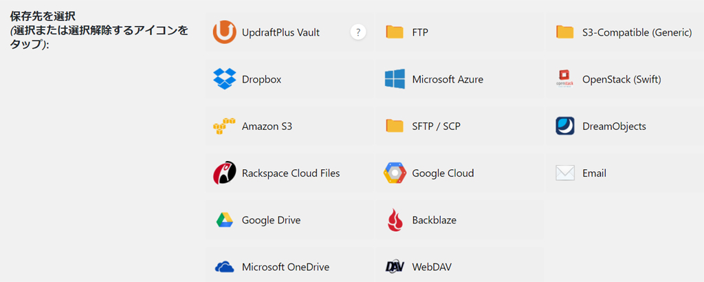 デフォルトの設定のままだとUpdraftPlusに保存されるのですが、それってあまり意味がないので安心な外部保存がオススメです。