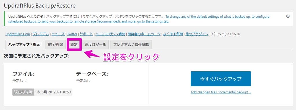 では最後にUpdraftPlusの使い方を簡単に解説していきます。