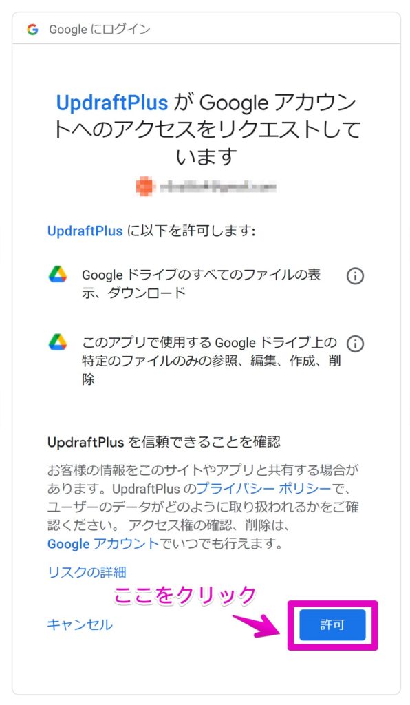 Googleにログインの画面が表示されますので『許可』をクリックします。
