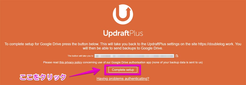 上記画像のような画面が表示されますので、『Complete setup』をクリックします。