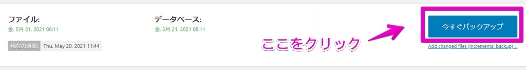 なのでスケジュール設定以外にも手動でバックアップを取る方法をお伝えしたいと思います。